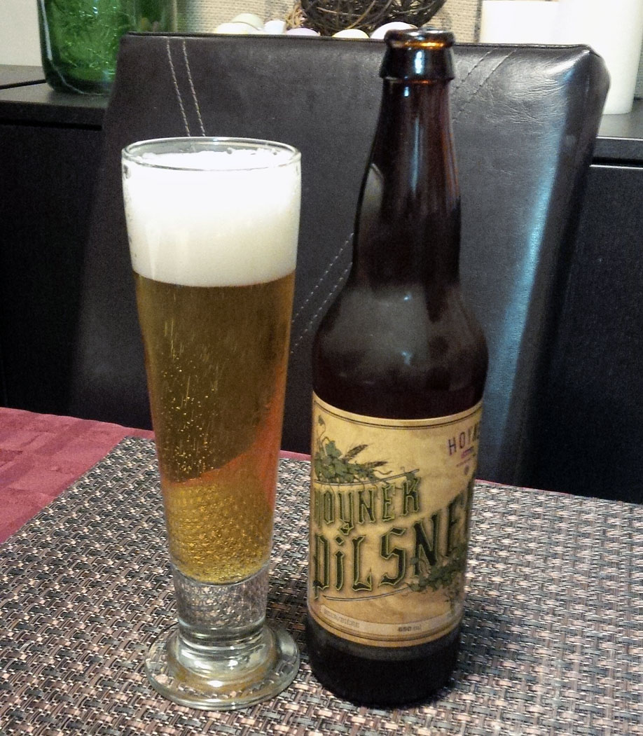 Brewed in craft central Victoria, BC comes Hoyne Brewing’s Hoyner Pilsner (5.3% alc, poured at home from a 22oz bottle in a tall glass).