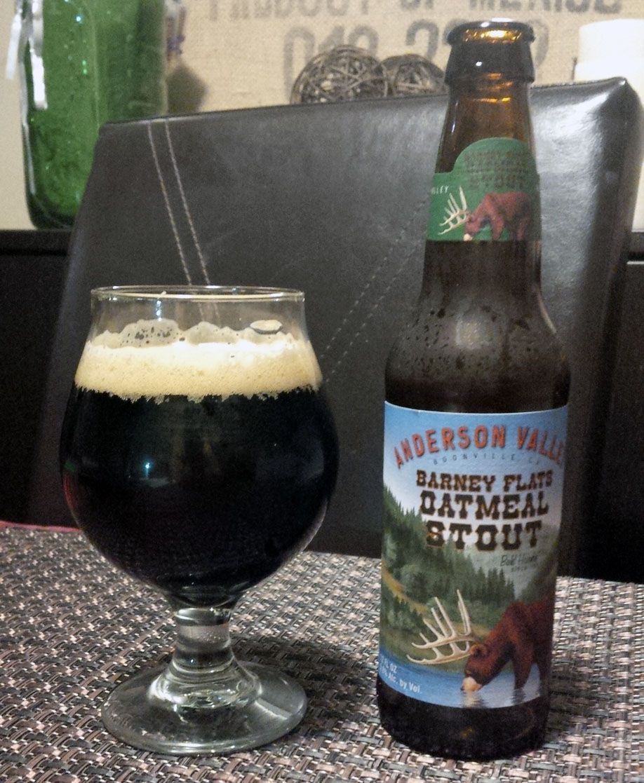 From a solar powered brewery in Boonville, CA comes Anderson Valleys Brewing’s Barney Flats Oatmeal Stout (5.8%, poured from a bottle at home)