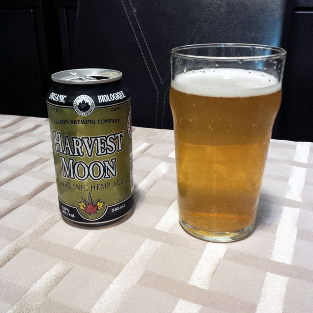 Nelson Brewing – Harvest Moon Organic Hemp Ale: Is an organic kolsch brewed in Nelson, BC at a strength of 5% and was enjoyed at home from a can poured into a standard pub glass.