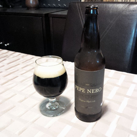 Goose Island – Pepe Nero 2011 (aged 3 years): Is a Belgian dark farmhouse ale that has been aged for 3 years (bottle date was Mar 4, 2011) and is brewed in Chicago, IL at a strength of 6% and was enjoyed at home in a snifter glass.