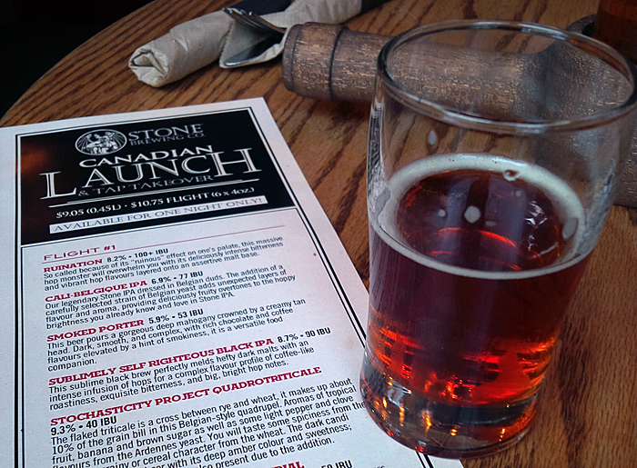 Stone Brewing Canadian Launch & Tap Takeover: If you were lucky enough to win tickets to this event like I was, you would have gotten an invite to attend the Stone Launch Party at the Craft Beer Market in Vancouver, BC on October 20th for what I believe was the very first of many multi-city and venue launch parties to celebrate Stone Brewing’s advancement into the Western Canadian craft beer market. Probably most widely known for their Arrogant Bastard Ale, Stone has been operating for over 18 years making a lot of industry changing beers that are full of flavour and attitude (just read one of their bottles to understand this better). I like a lot of their beers and was looking forward to sampling some stuff that I just haven’t been able to get my hand on yet and I can say that this event delivered quite nicely in that department with 15 unique beers available for one night only.