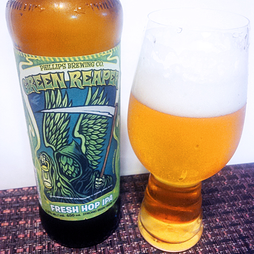 Phillips Green Reaper Fresh Hop IPA: Brewed in Victoria, BC at a strength of 6.5% abv this Fresh Hop IPA was a little late to the scene compared to a lot of the other island fresh hop beers with Willamette hops grown in Nanaimo which perhaps were harvested at a different time than the popular local one’s from Chilliwack, BC (aka Sartori). I have to admit, this beer has a pretty sweet label and name which is perfect for it’s early fall release and I had my bottle about 3 days after it hit the shelves in some of the Greater Vancouver locations near the end of fresh hop hunting season.