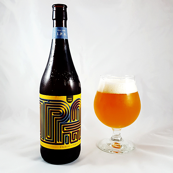 Aroma and Appearance: Full Time IPA pours a gold colour with two fingers of foam and medium carbonation made up of slow rising bubbles that make their way through bits of chunky haze in the glass. The aroma is papaya, pineapple, pine resin and sweet caramel.